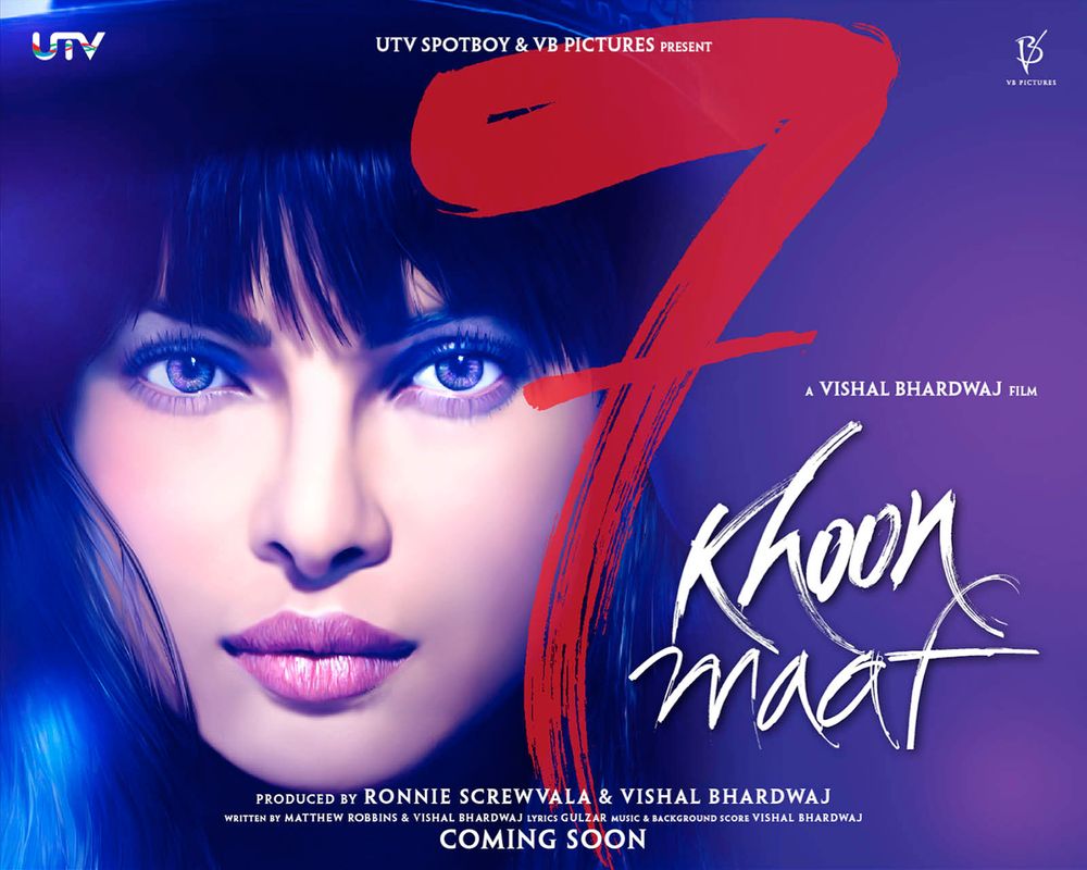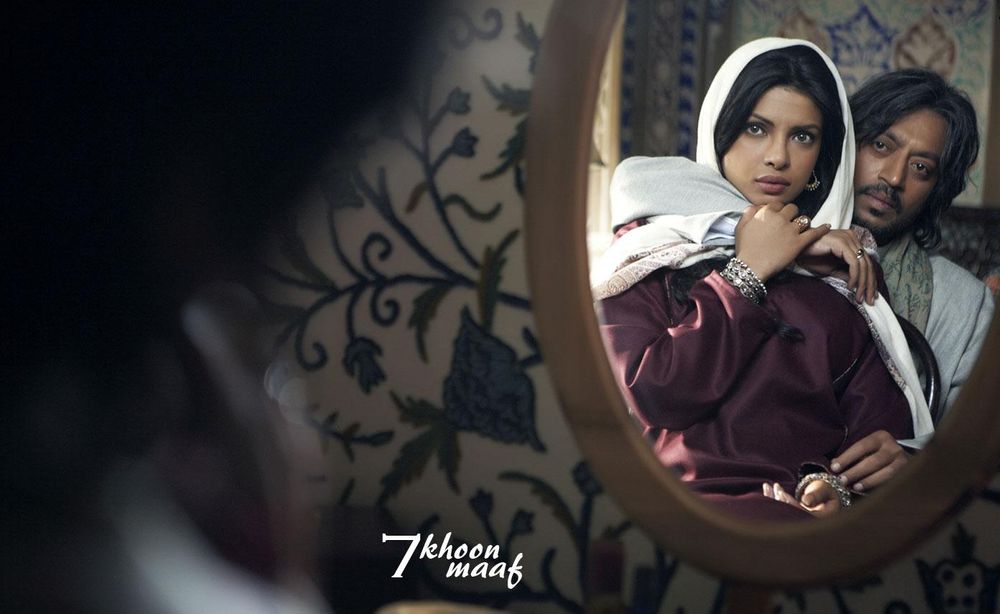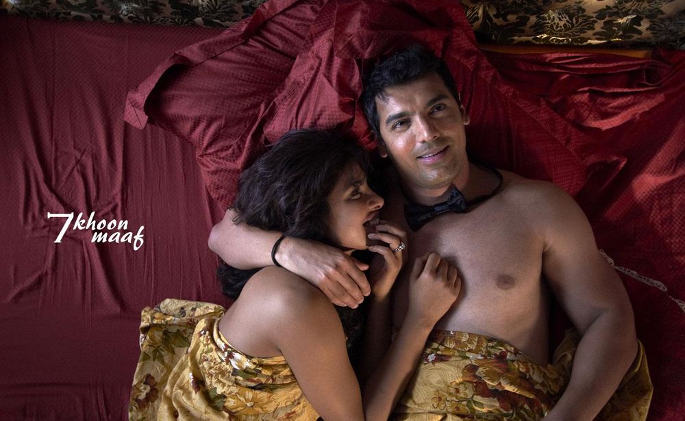 7 Khoon Maaf tells the story of an Anglo-Indian woman, Susanna Anna-Marie Johannes (Priyanka Chopra), who murders all her husbands. Susanna tries to find love, but six of her seven husbands have a flaw which proves fatal. The killings (and her yearning for love) are explained by the loss of her mother at a young age. The story is told by a young forensic pathologist, Arun, (Vivaan Shah) to his wife (Konkona Sen Sharma). Arun has watched Susanna since their childhood, and has a secret crush on her. He owes his life to her; she funded his education, making him what he is today. Arun tells his wife that Susanna has committed suicide, leaving him a note congratulating him on his marriage. The doctor must now confirm that the body found is Susanna's. Arun is unable to overcome his grief over her death and pours out his heart to his wife, who listens patiently.