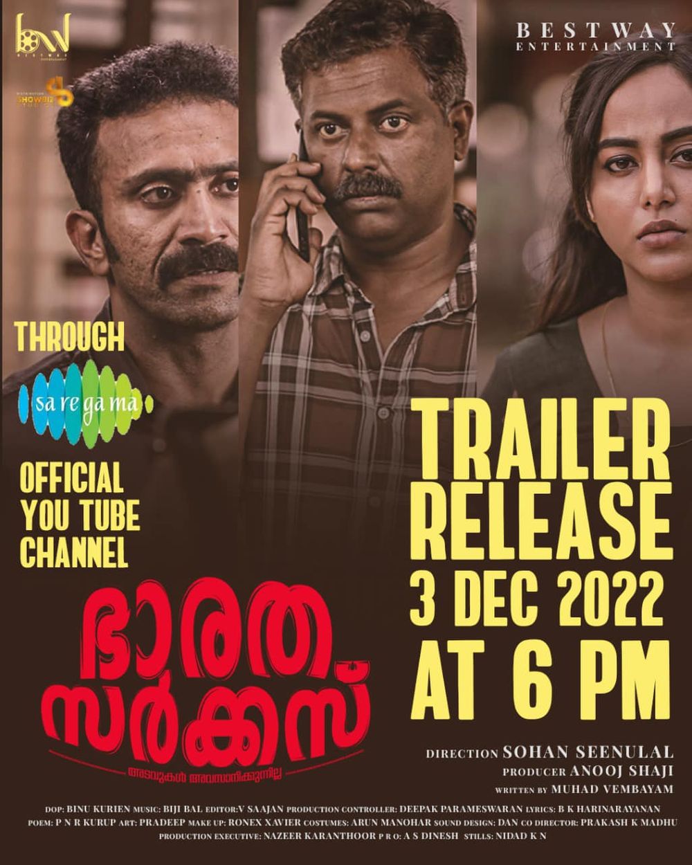 Crew: Sohan Seenulal (Director), Binu Kurian (Director of Photography), Bijibal Maniyil (Music Director)