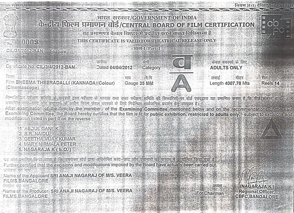 Crew: Om Prakash Rao (Director), Anaji Nagaraj (Director of Photography), Abhimanyu Ray (Music Director)