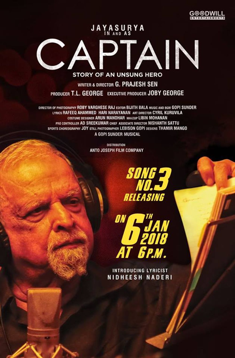 Crew: Prajesh Sen (Director), Roby Varghese Raj (Director of Photography), Gopi Sundar (Music Director)