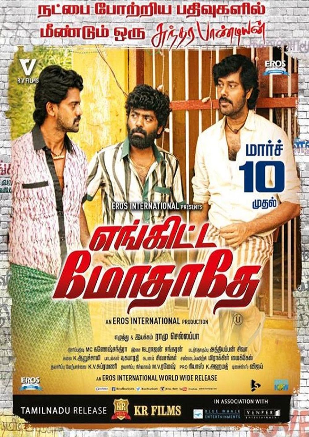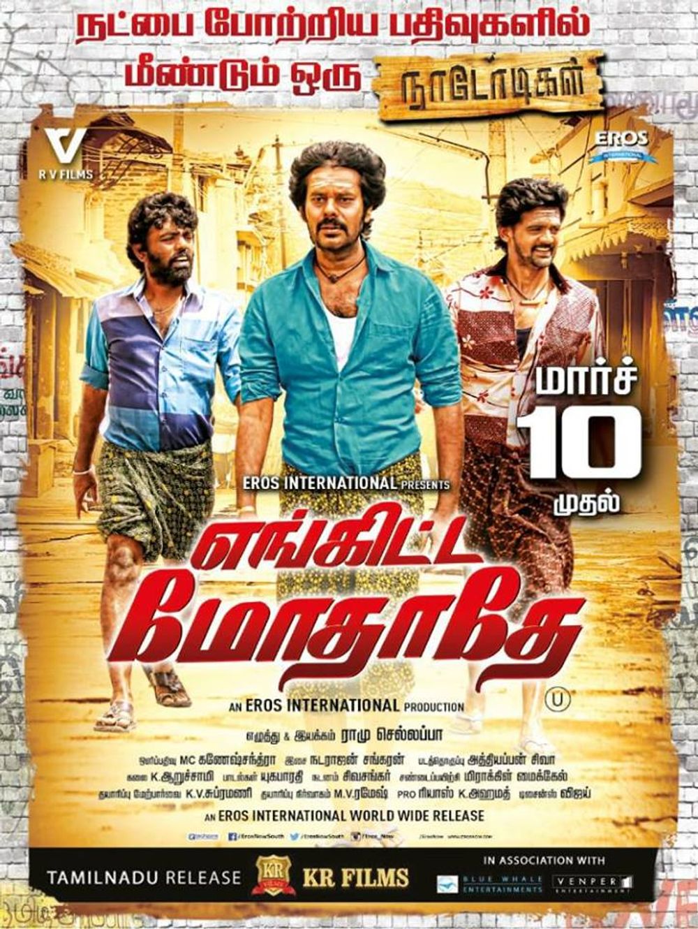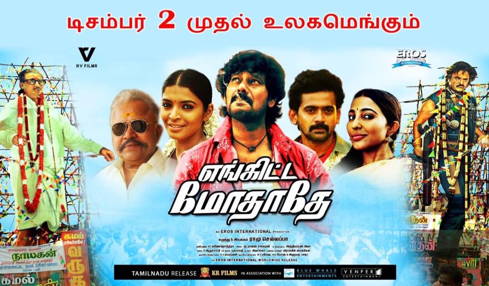 Set in the 80's, this film deals with the rivalry between Superstar Rajinikanth and Ulaganayagan Kamal Haasan fans and their cut-outs. This flick is directed by debutant Ramu Chellappa and to know whether the director has impressed the viewers, read our review here: www.cinecluster.com/engitta-modhathey-movie-review-rating.php