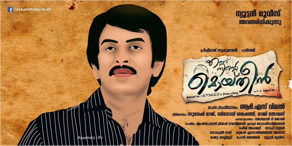 "Ennu ninte Moideen" is a sweeping epic romantic drama and tragic tale of star crossed lovers borrowed from the real life story of its lead players Kanchanamala and Moideen from the Malappuram/Kottakal belt in Kerala.