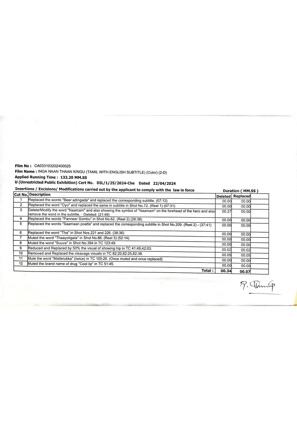 Rating: U (India)