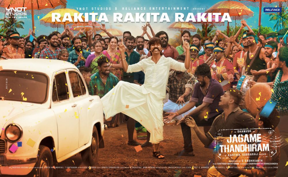 Crew: Karthik Subbaraj (Director), Shreyaas Krishna (Director of Photography), Santhosh Narayanan (Music Director), 24AM Studios (Publicity Designer), Tuney john (Publicity Designer)