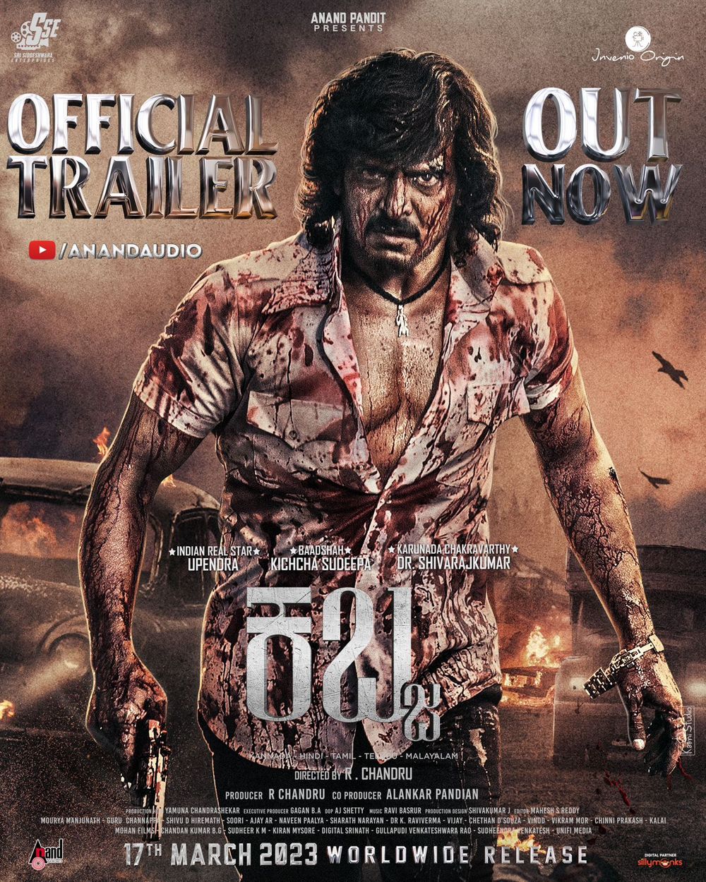 Crew: R Chandru (Director), Kiran Mysore (Assistant Production Manager), Mahanthesh (Assistant Production Manager), Arjun Shetty (Director of Photography), Chethan Handattu (Music Producer), Ravi Basrur (Music Director)