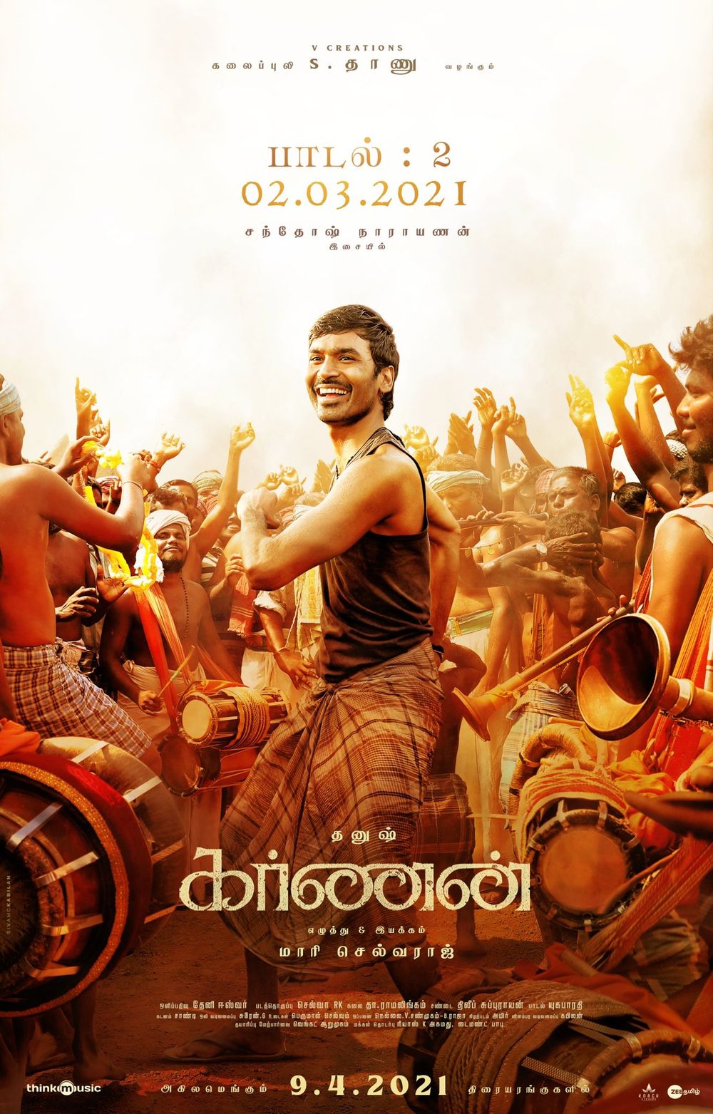 Crew: Mari Selvaraj (Director), Theni Eswar (Director of Photography), Santhosh Narayanan (Music Director), Kabilan Chellaih (Publicity Designer)