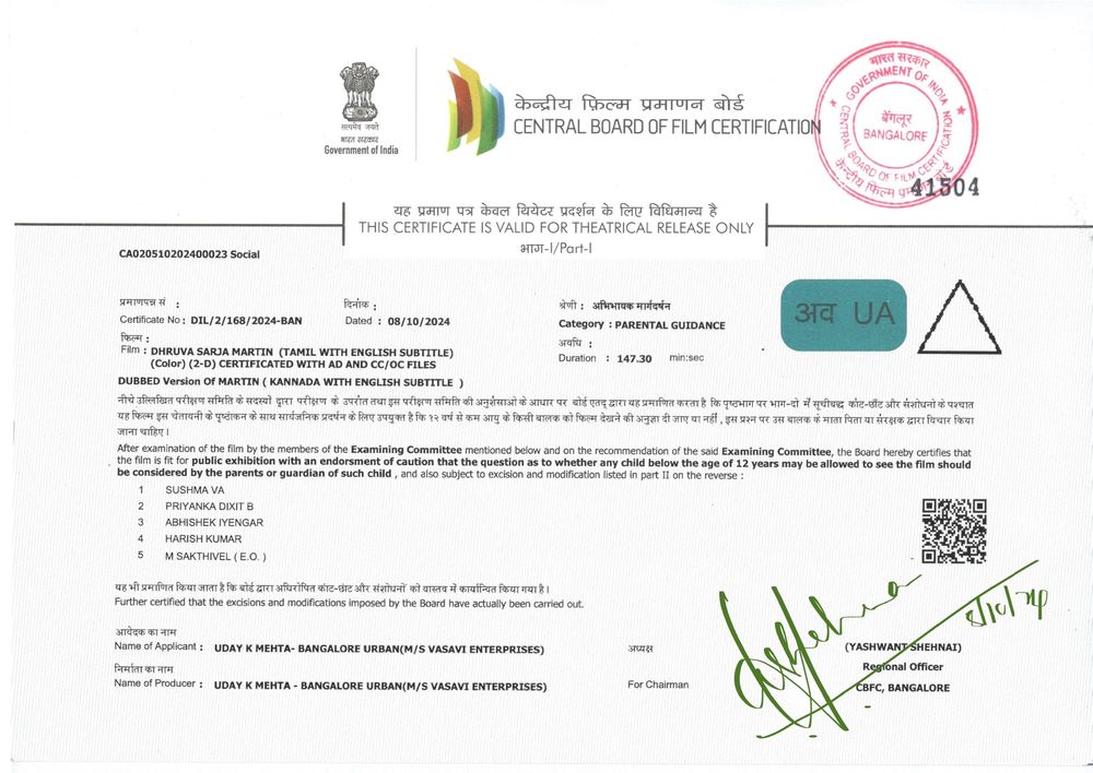 Release Dates: 11 Oct 2024 (India | Wide Theatrical Release)