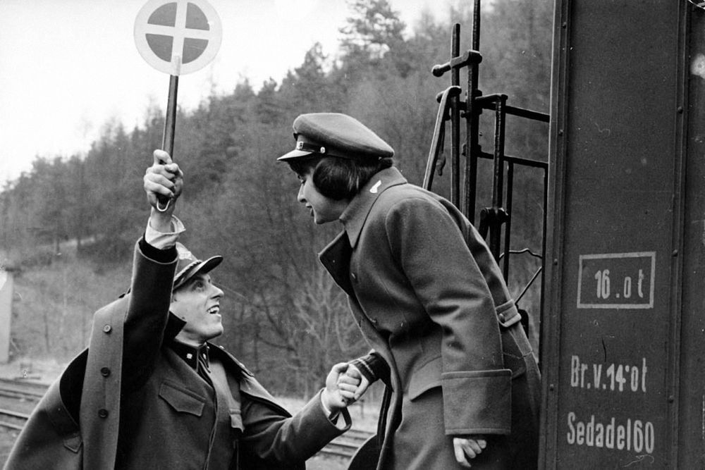 A bumbling railroad dispatcher joins the resistance in World War II to impress the girls.