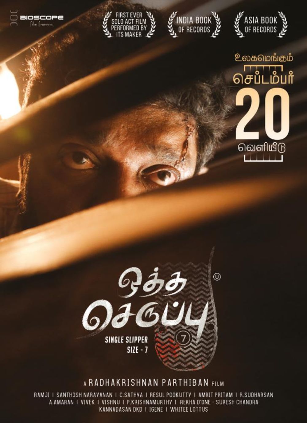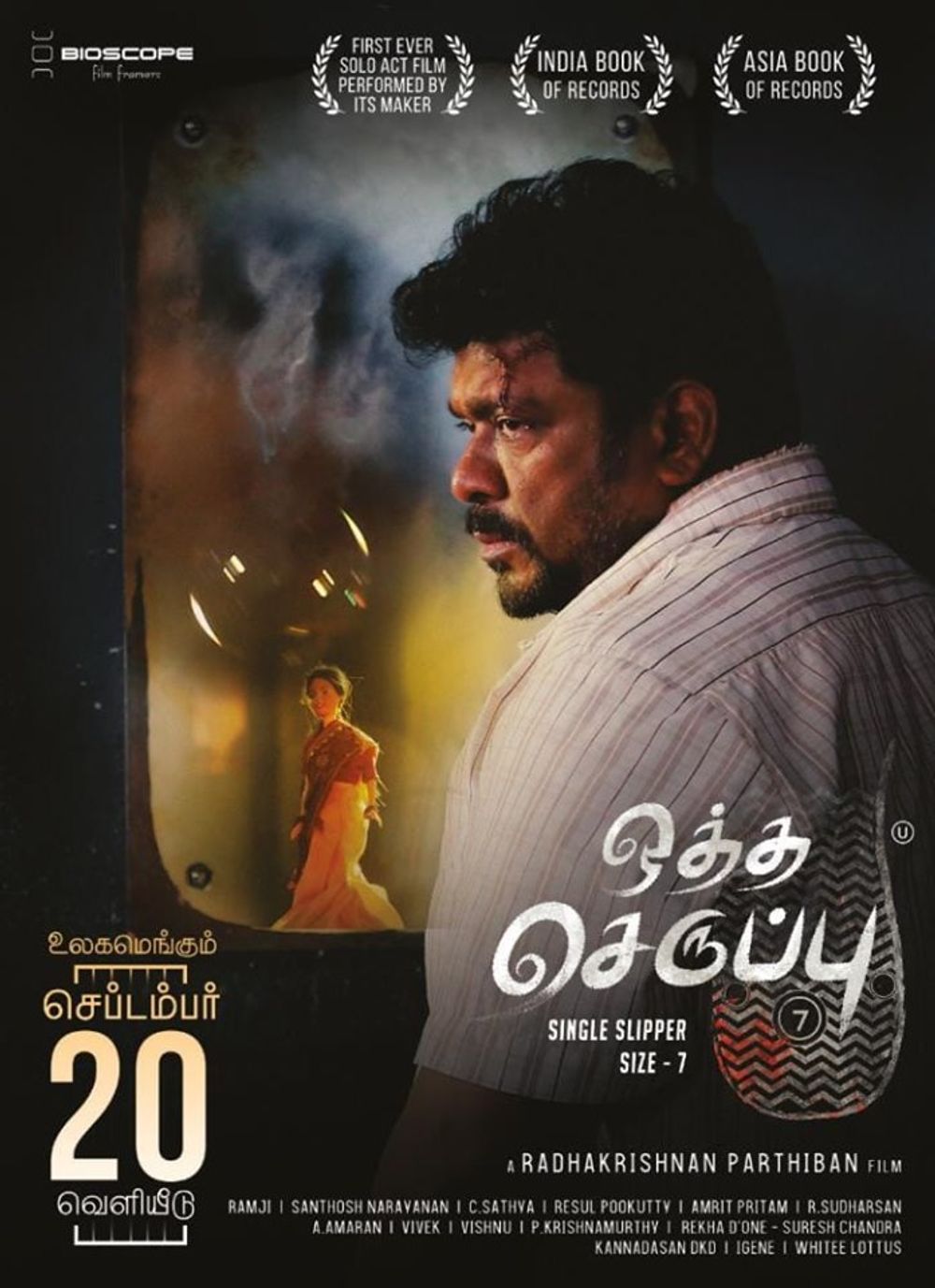 A middle-aged man named Masilamani is being investigated as a murder suspect. While the camera is being fixated only on the man from the start of the investigation, he is observed taking oath of silence, refraining from even food or water till the evening. Masilamani reveals that his 9-year-old son Mahesh suffers from a disease which gives him only another 5-6 years to live and hence he takes such oaths regularly, praying for his son’s long life. The boy is waiting outside the investigation room. He asks them to tell him that his father is attending a police interview. He also asks them to give his son his tablets and, apply eye drops for him at 11 am. He asks that a female cop does it too, so that it is done with care. Throughout the investigation, Masilamani talks in a non linear fashion, provoked by visual or audio stimuli around the room. At one point, Masilamani admits to having committed the murder. His weapon of choice was the glass dust rubbed string of a kite. He tells them that his son loves kites very much but that he loves his son even more. And after his son leaves him, he will end his life too, he tells them. He writes his statement and is about to sign it. The papers fly. When he looks up at the flying papers, he sees ‘Usha’ written on the fan, landing his narration on his biggest stimulus - his wife. Masilamani’s eyes tear up at the memory of her and just when he starts to sign again, he stops and admits to having committed another murder that took place in Madurai, a year ago. The police officers are shocked. They quickly start investigating. Not only does it verify but they also come across another murder that took place in Pondicherry one year ago and connect it back to Masilamani. All 3 murders have been committed in the same manner. The 3 murders are connected by the fact that aseze 7 shoe is lying around and Masilamani doesn't wear a size 7 shoe. Masilamani reveals that his wife had gone missing. They start digging into her dissapearance and find an abandoned corpse at the GH morgue. He doesn’t even look at it but nods that it is her. Confused, the cops ask him about it and he reveals that he had no clue about her death but only tells them that she wore a green saree similar to what was shown in the photograph. Masilamani is a security guard at a popular sports and recreation club. His family got him married to Usha, a beautiful girl from his village. Living in the club premesis, they have a son within 8 months of marriage being born with a life-threatening condition. Upon seeing the women at the club with their fancy lifestyle and jewellery, Usha begins to develop a liking for the luxurious lifestyle which leads to her going astray. Hearing the rumors about his wife's loose morales, Masilamani confronts her and she convinces him into believing her. Upon learning the truth by himself, Masilamani begins to track down his wife's illegitimate lovers and begins to murder them one-by-one. Upon observing his behavior, the psychiatrist reveals to the police that he has a nurturing motherly side to him as well. Masilamani reveals that he may or may not have commited the crimes like the original murder, and the police realize that though he is soft he is also shrewd enough to find the loopholes and get away with the crime. Without solid evidence and having to not end the life of a man who has a diseased son, Masilamani is released on Humanitarian grounds. As they walk away, he tells Mahesh that his mother has gone out of town on work, but as