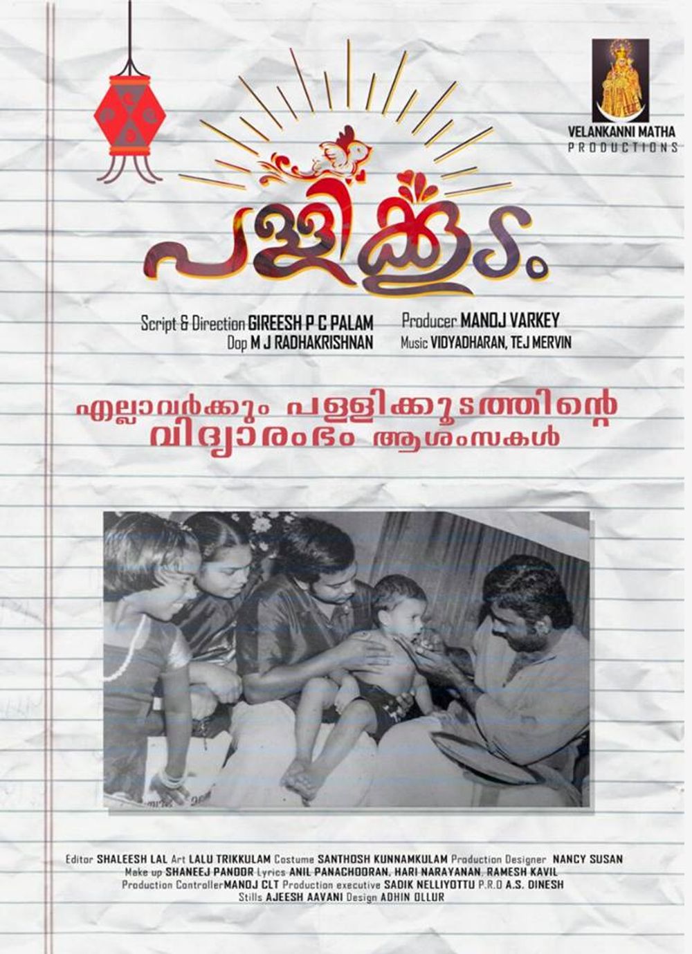 Crew: Gireesh PC Palam (Director), MJ Radhakrishnan (Director of Photography), Thej Mervin (Music Director), Vidhyadharan Master (Music Director)