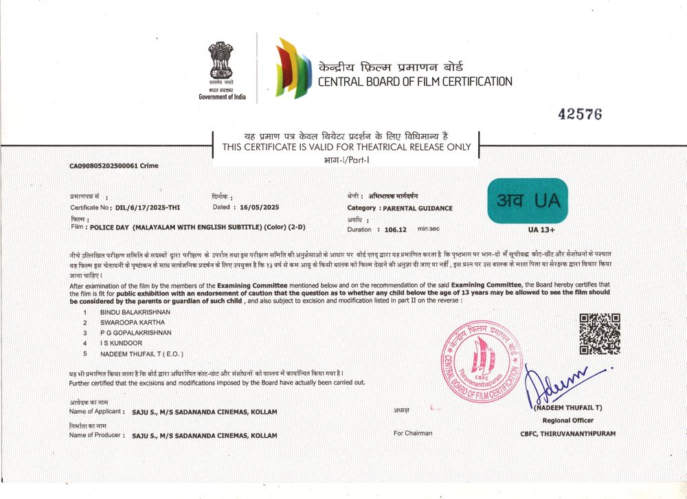 Crew: Santhosh Mohan Palodu (Director), Indrajith S (Director of Photography), Ronnie Raphael (Music Director)