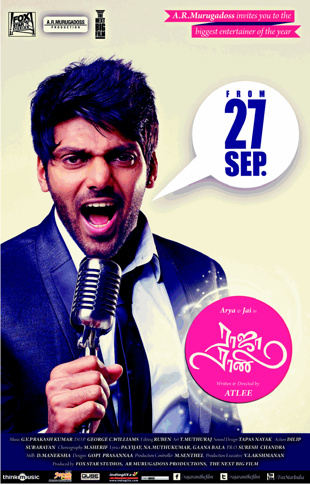 Cast: Arya, Jai, Nayanthara Kurian, Nazriya Nazim