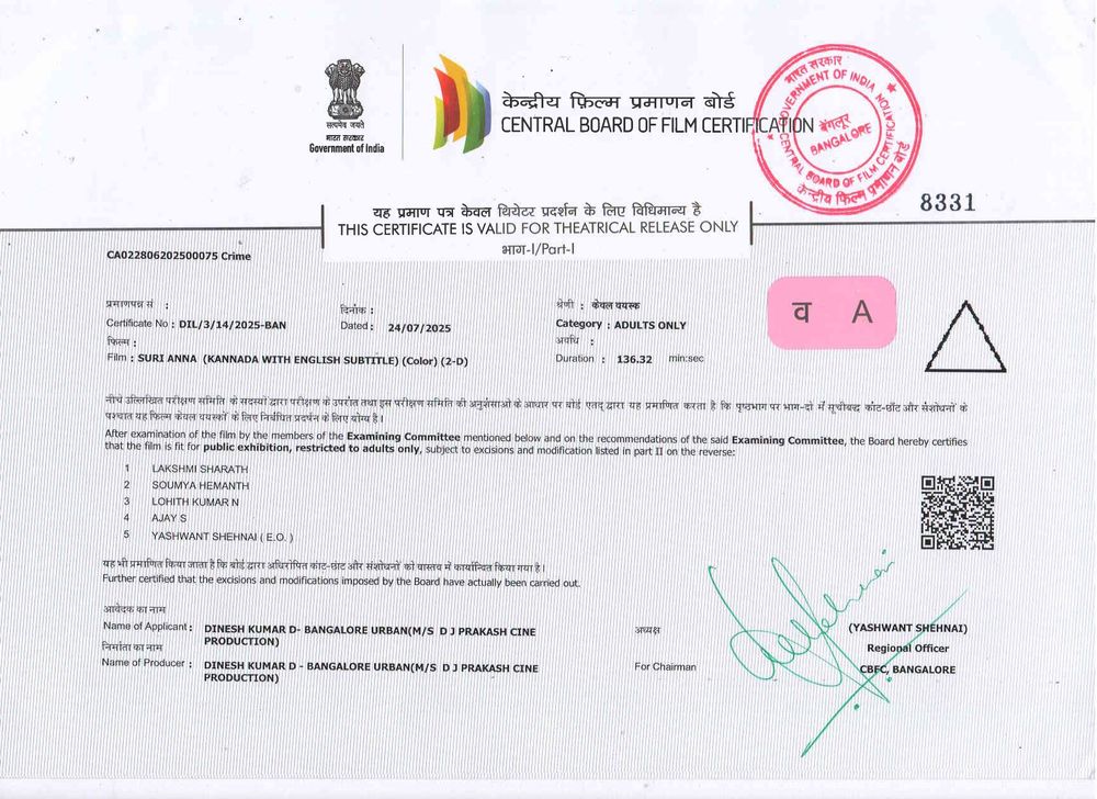 Crew: Salaga Suri Anna (Director), MB Alli Katti (Director of Photography), KM Indra (Music Director)
