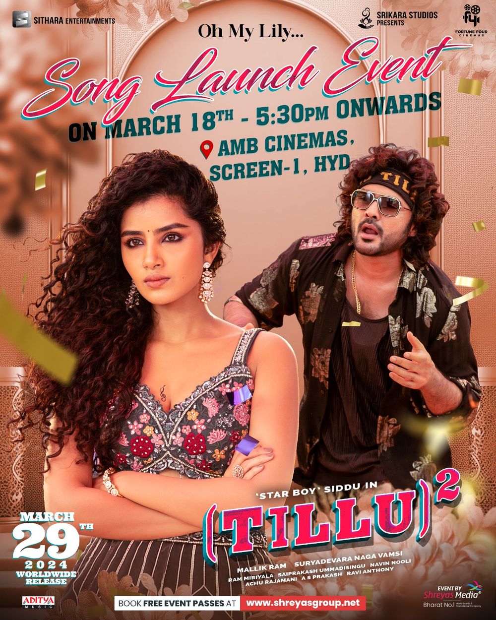 Advance bookings for the Telugu movie Tillu Square have begun in major areas, especially Hyderabad. With only four days until the theatrical release, the response for advance ticket bookings has been phenomenal. On the BookMyShow app, the movie has garnered over 11 lakh interests in Hyderabad alone.